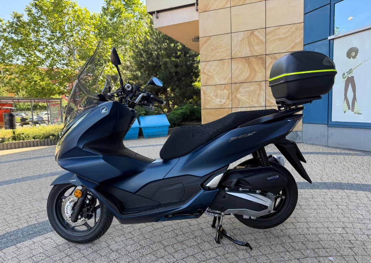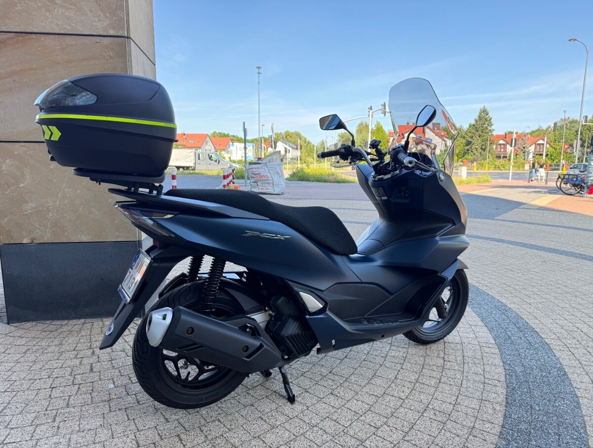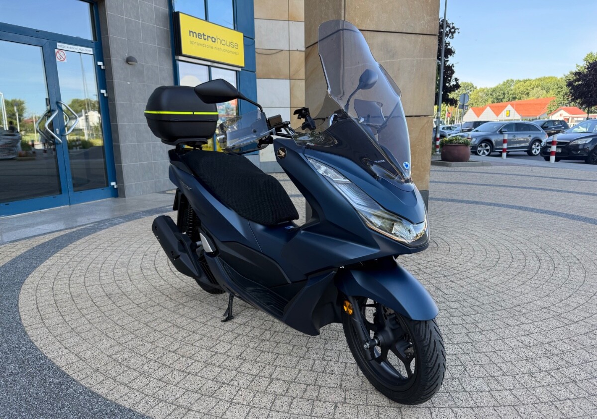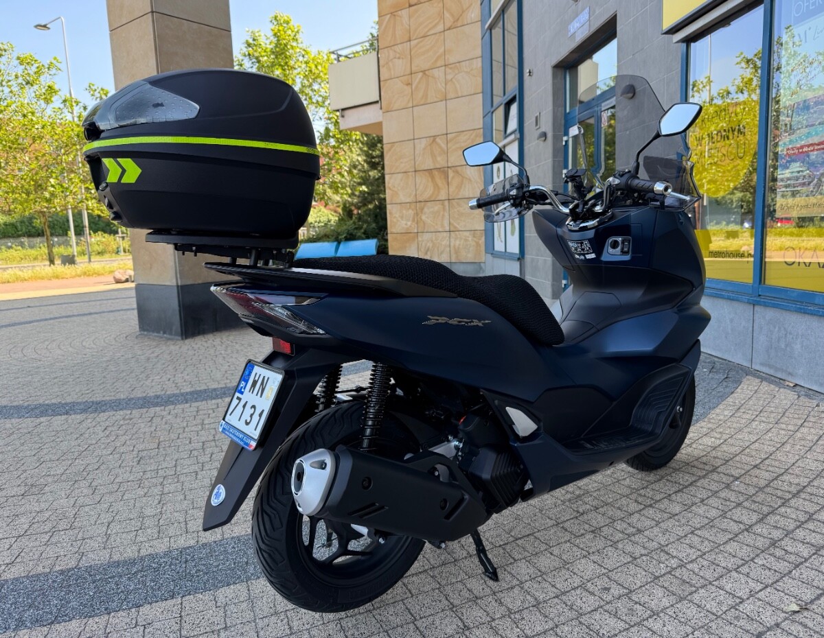 Skuter kupiony w warszawskim salonie Honda Wyszomirski pod koniec kwietnia 2024. Aktualny przebieg 2651 km. Kolor niebieski matowy. Do skutera dokładam turystyczną szybę PUIG, średniej wysokości szybę GIVI (nie widoczna na zdjęciach), deflektory dłoni, kufer z płytą montażową GIVI i przewiewny pokrowiec na kanapę. Na zdjęciach widnieje jeszcze uchwyt marki Quadlock, który nie jest stanowi oferty - już go zdemontowałem. PCX jest absolutnie bezwypadkowy, bez "paciakowy", bez zarysowań czy jakichkolwiek uszkodzeń. 100% sprawny. Skuter pali około 2 litrów na 100 km. Gwarancja fabryczna do końca kwietnia 2026. Serwis olejowy zrobiłem w okolicach 1000 km. Sprzedaję na pełną fakturę VAT - kupujący osoba fizyczna nie płaci 2% podatku PCC, a przedsiębiorcy mogą odliczyć VAT od zakupu. Ogłoszenie daję na razie tylko tu na forum, ale w marcu - kwietniu, jak się nie sprzeda wystawię na portalach branżowych. Cena za skuter z wyposażeniem 12.900 zł brutto. Zapraszam do kontaktu przez PM.